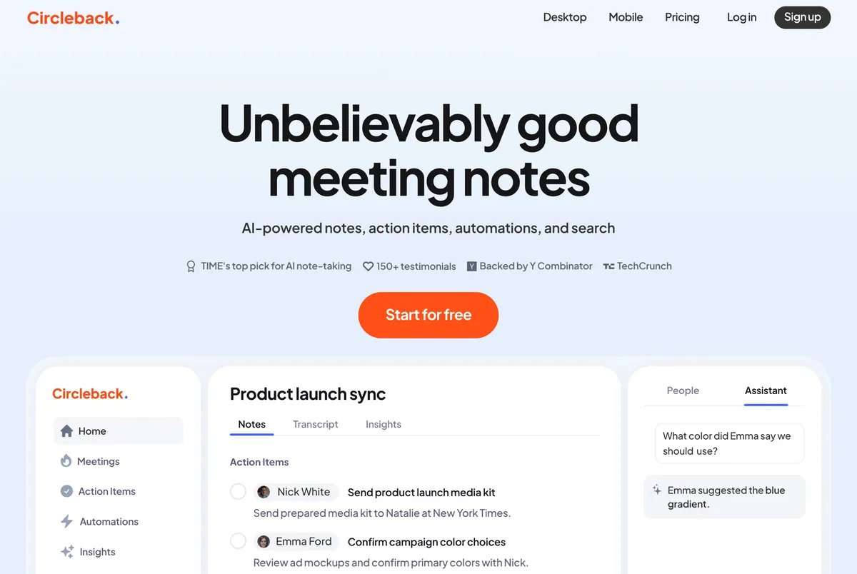 ③ Circleback – All-in-One with Auto Recording and AI Search