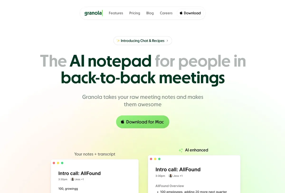 → Botless tools like Krisp, Granola, Circleback, SuperIntern are essential.