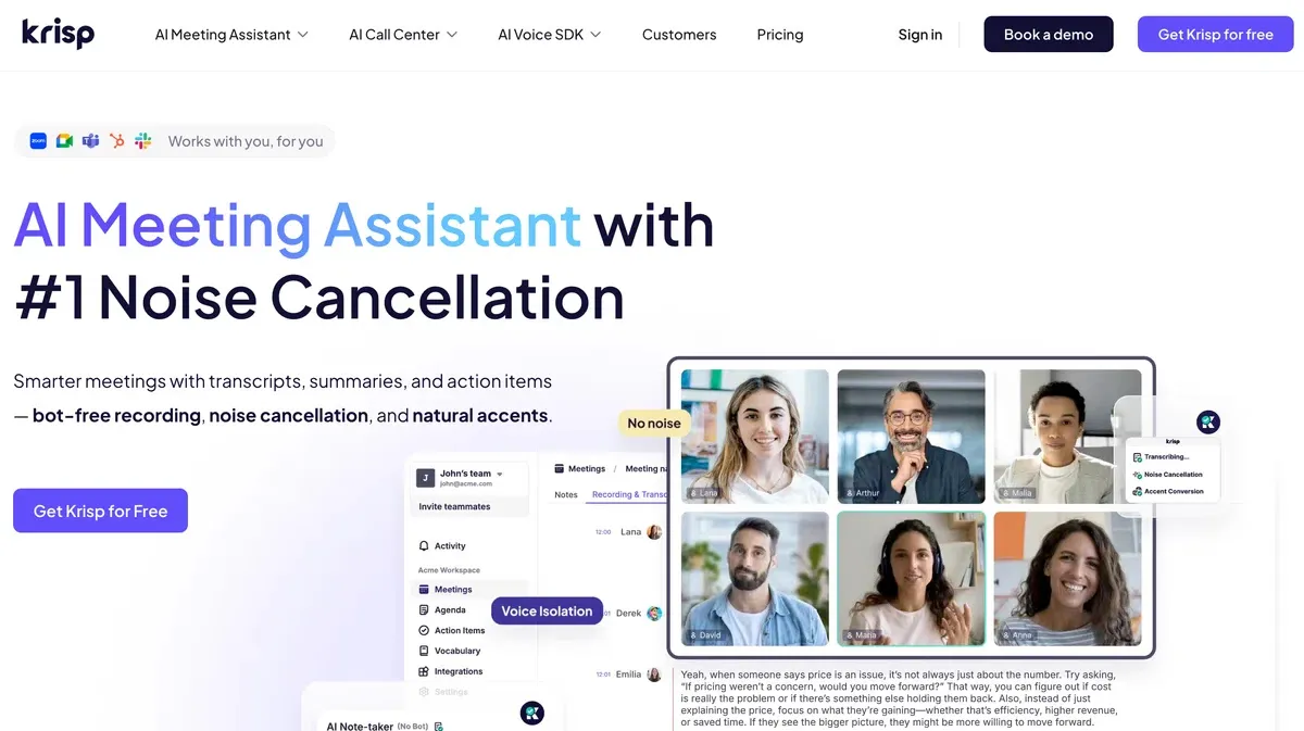 ① Krisp – From Noise Cancelling to AI Meeting Notes
