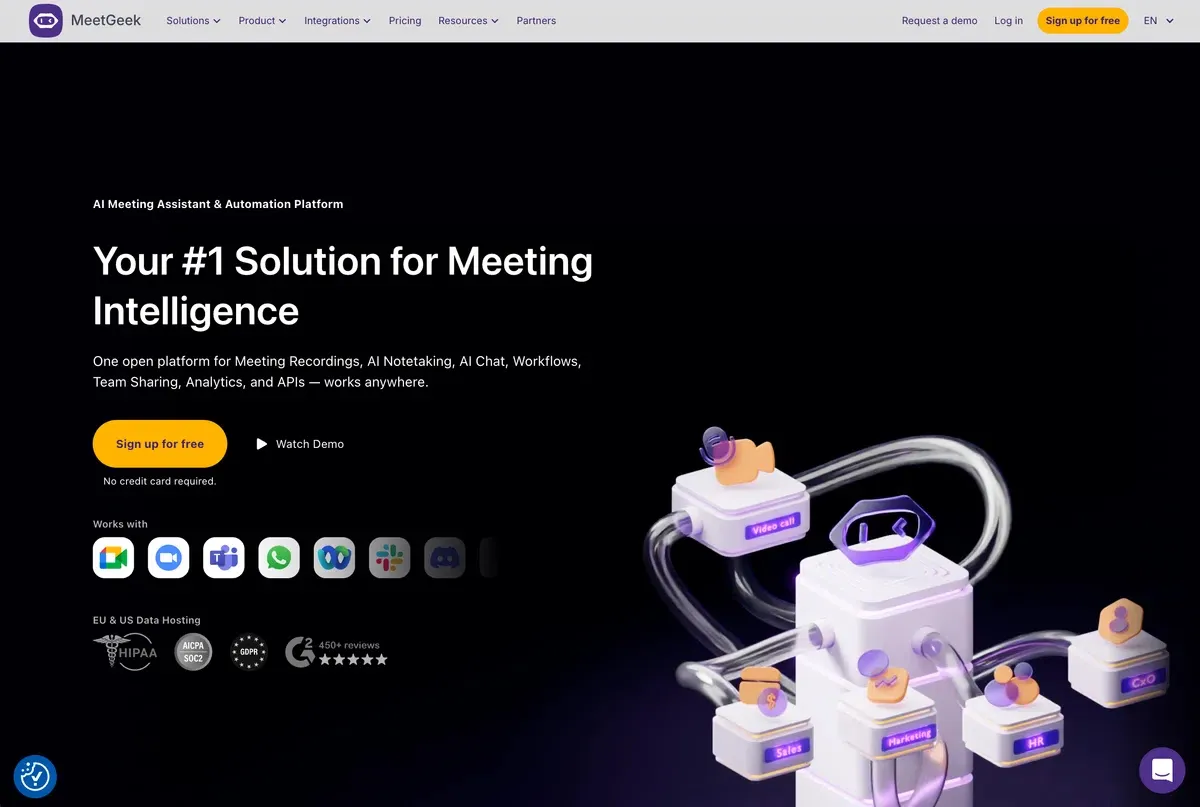 MeetGeek is a classic bot-joining AI meeting note tool: