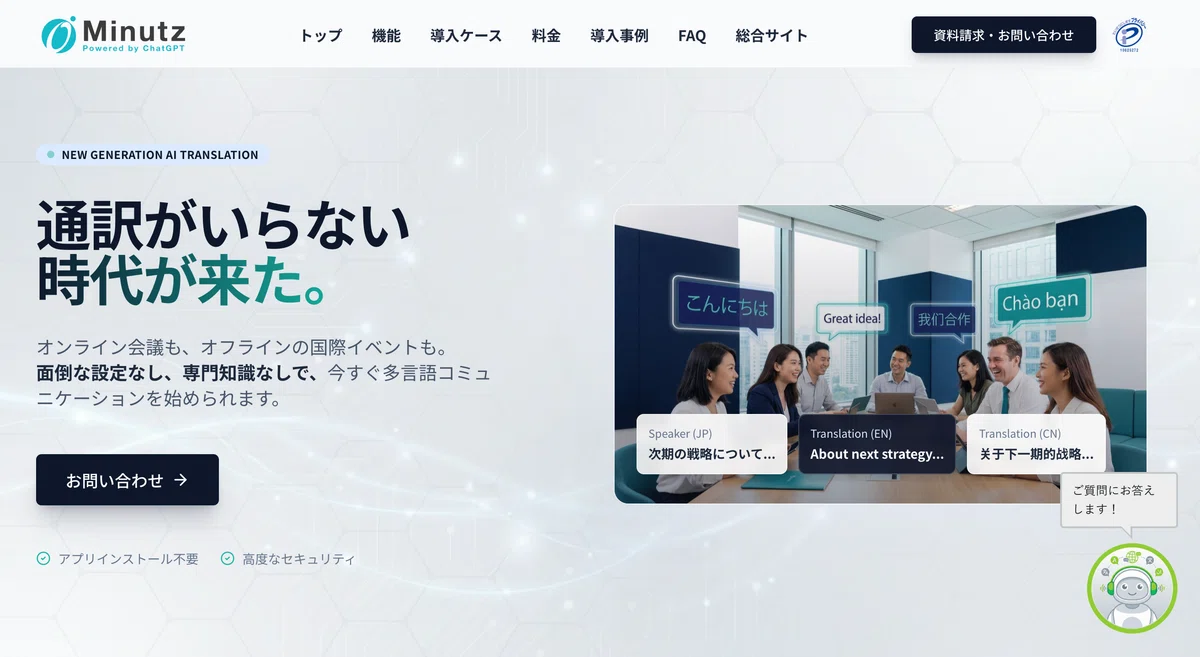 Minutzは、株式会社ObotAIが提供するWeb会議向け同時翻訳サービスです。