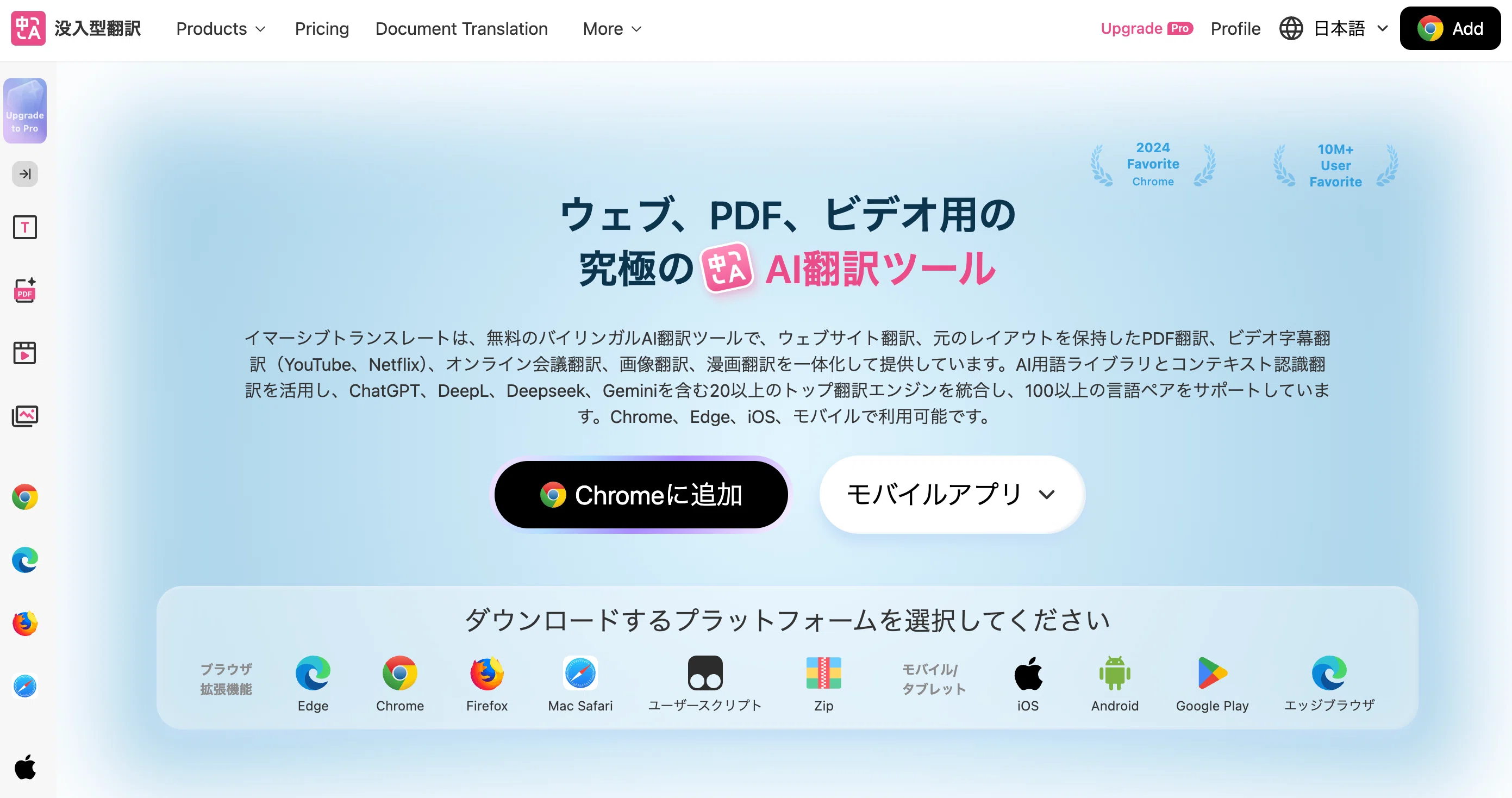 Immersive Translateは、元々Webページや動画の二言語字幕翻訳サービスとしてスタートし、後からオンライン会議翻訳にも対応しました。