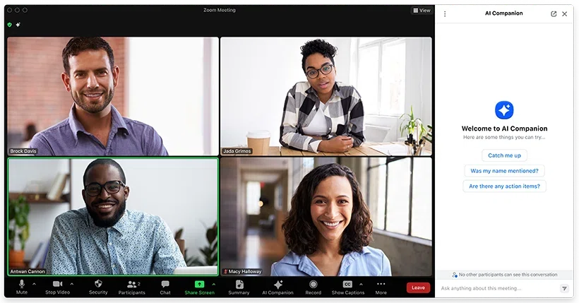 SuperInternはボットレス設計のため、自分のPCで音声をキャプチャし、他の参加者には一切見えません。社外ミーティングでも気兼ねなく使えます。