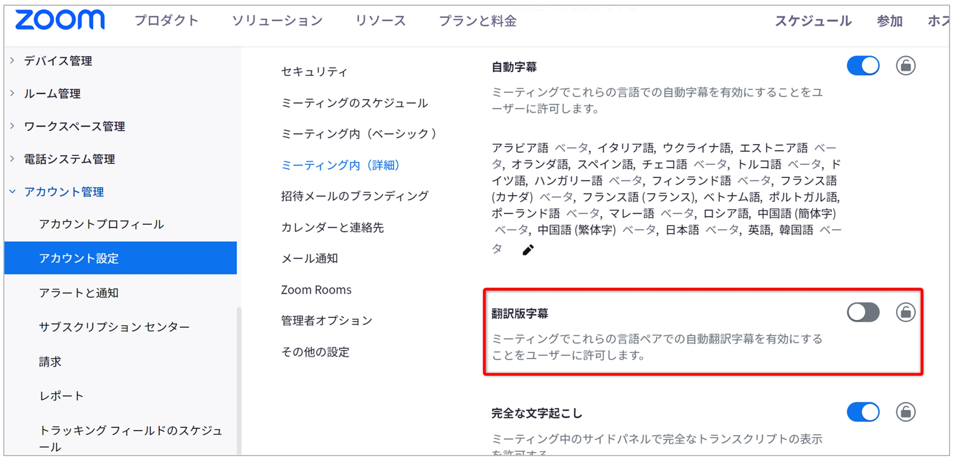 - 有料Zoomアカウントに翻訳字幕アドオン(月額約5ドル/ユーザー)を追加契約している